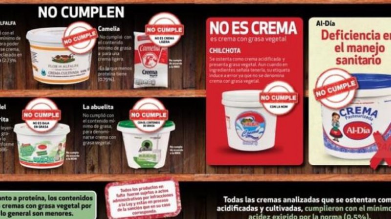 Chilchota: se ostenta como crema acidificada y presenta grasa vegetal. Aun cuando en ingredientes señala tenerla, su etiqueta induce a error ya que no se denomina crema con grasa vegetal.