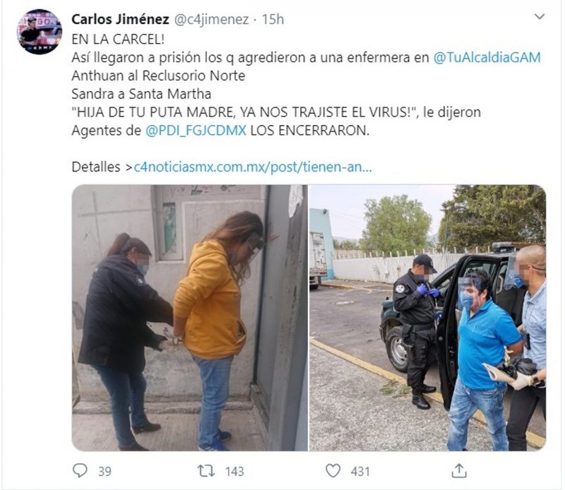 De acuerdo con el expediente del caso, luego de la agresión física y verbal que atentó contra la integridad de la enfermera, la Fiscalía Desconcentrada en Gustavo A. Madero abrió una carpeta de investigación, la cual integró con la finalidad de ejercer acción penal en contra de las dos personas por consumo y posesión de drogas delito del que fueron absueltos luego de que el juez indicara que su detención había sido ilegal