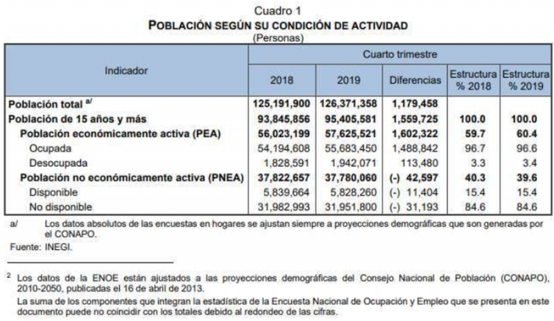 Respecto al desempleo, el ejercicio completo de gestión de AMLO (2019) muestra en números redondos que el número de ocupados creció en 1.5 millones de personas y el de desempleados en 100 mil, una proporción de 15 a uno, porque la presión laboral lo hizo en 1.6 millones. Una tendencia así muestra todo lo contrario a lo que afirmó Claudio X. con cifras oficiales de Inegi.