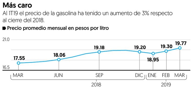 “Al iniciar el 2019, el precio de la mezcla mexicana de petróleo fue de 43.65 dólares por barril, mientras que, para el 12 de abril, éste se ubicó en los 63.59 dólares por barril. Al ser este el insumo indispensable para producir gasolina, los precios de la molécula se ven automáticamente impactados”, dijo Shell en un correo a El Financiero.
