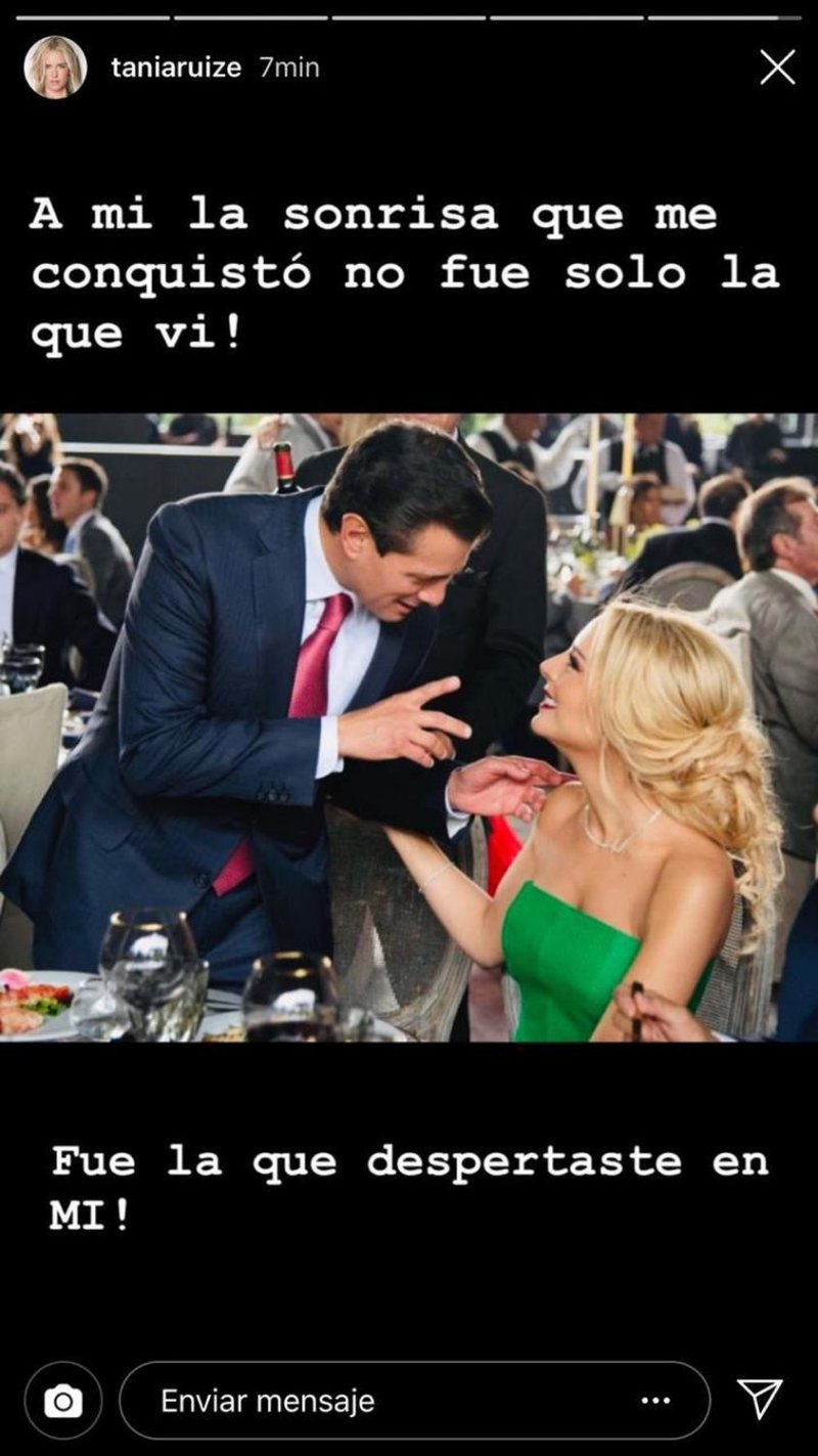Tania Ruiz utilizó sus historias de Instagram para publicar un importante mensaje y de paso difundir la primera fotografía junto con Enrique Peña Nieto en un evento social; un hecho que ya recorrió los andenes de la red.