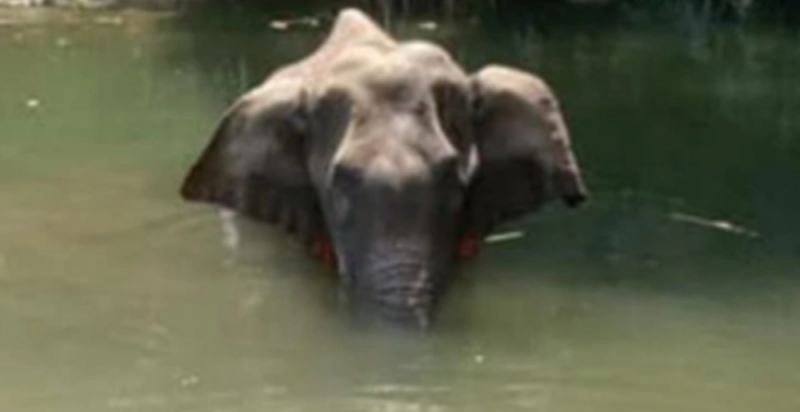 Presuntamente la elefanta permaneció en medio del río Velliyar sin poder hacer más, y de esta forma fue que el dispositivo explosivo se activó al interior de su boca.