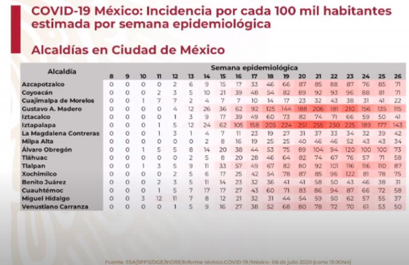 En este caso, Gustavo A. Madero e Iztapalapa son las que se han visto más afectadas. Estas son también las más pobladas, destacó. Sin embargo, también hay buenas noticias: a partir de la semana 24 se observa una disminución en el número de casos.