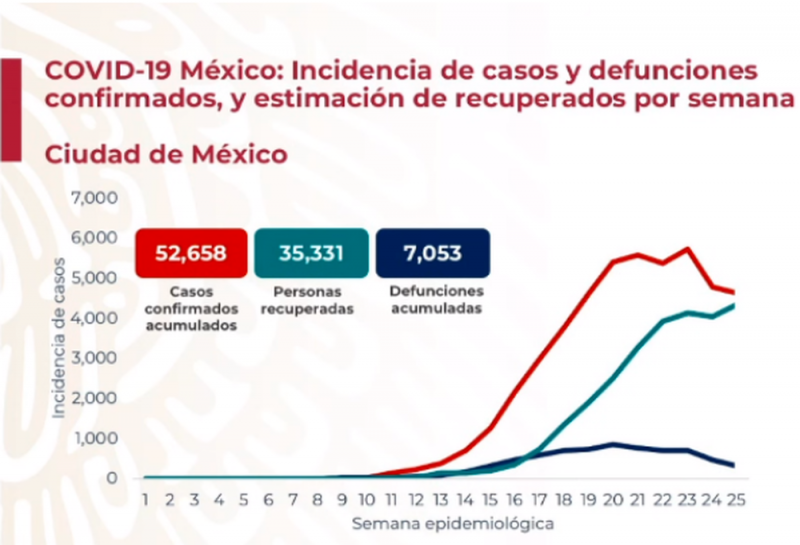"Vemos una noticia positiva: ya desde hace 15 días hay un descenso progresivo de los casos nuevos en la Ciudad de México. La CDMX alcanzó hace poquito más de 15 días el punto máximo de la epidemia y tiene un descenso progresivo de casos nuevos, hospitalizaciones y defunciones", explicó en la conferencia matutina.