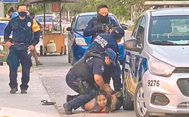Asociaciones feministas y de migrantes reconocieron como Victoria Esperanza Salazar, de 36 años, a la mujer que aparece en un vídeo en el que la asfixia uno de los cuatro agentes de la Dirección Municipal de Seguridad Pública de Tulum presentes en el lugar.