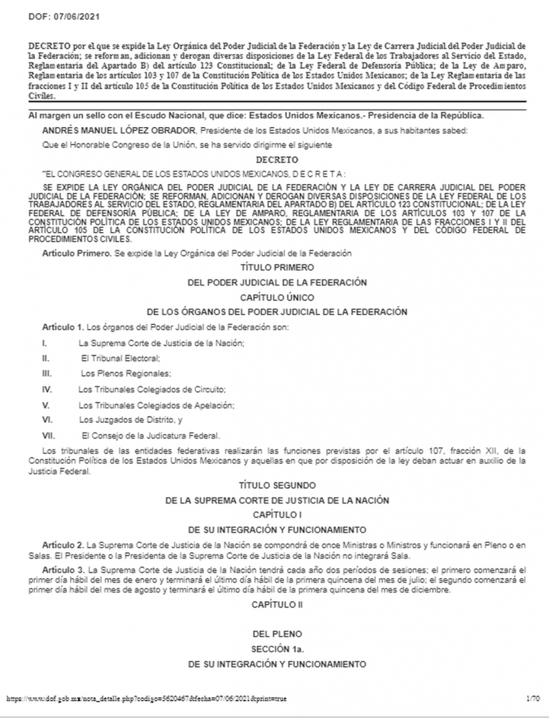 La Ley d Carrera Judicial del Poder Judicial de la Federación y Las reformas a la Ley Orgánica del Poder Judicial fueron publicadas este lunes en el Diario Oficial de la Federación.