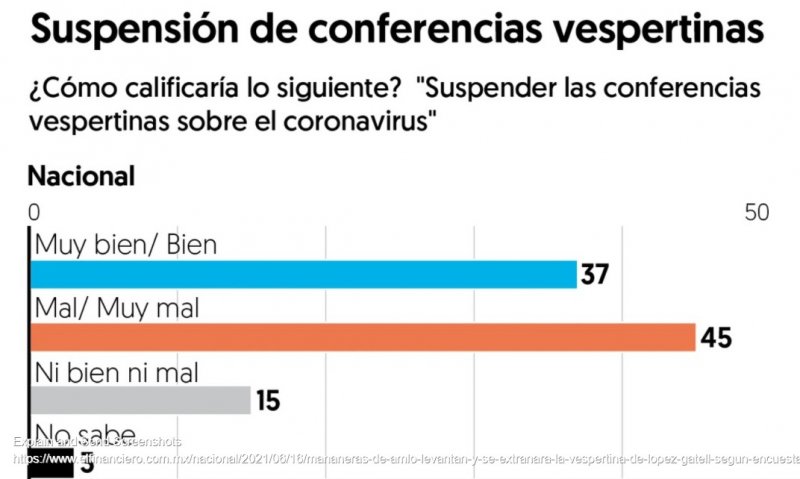 Además, el 45 por ciento de los encuestados extrañará las conferencias vespertinas del Subsecretario de Salud, Hugo López-Gatell. Y calificó como mal/ muy mal el que se cancelaran.
