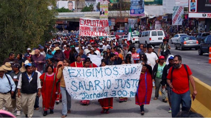 El salario mínimo profesional para las personas que laboran como jornaleras quedó en 160.19 pesos diarios. Aunque desde hace varios años han exigido un mínimo de 300 pesos diarios.