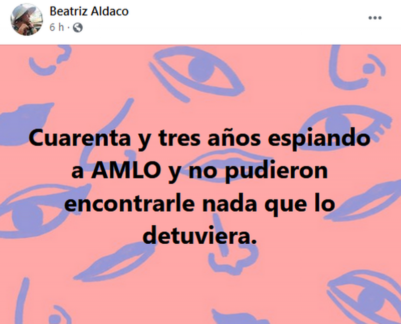 Los usuarios de Facebook también afirmaron que sin necesidad de realizar espionaje, el presidente ha puesto en evidencia a muchos malos funcionarios del pasado: “mejor los está desenmascarando el Presidente López Obrador a toda la sinrazón que nos ha desgobernado…”.