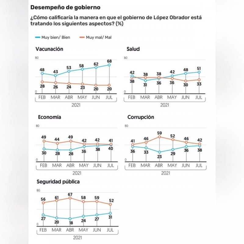 El 68 por ciento de los mexicanos califica como buena o muy buena la campaña de vacunación contra el COVID-19, de acuerdo con la encuesta de El Financiero Bloomberg realizada en julio.