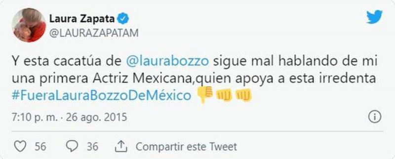 Desde ese momento Laura Zapata ha pedido que Laura Bozzo se fuera del país e incluso la llamó corrupta.