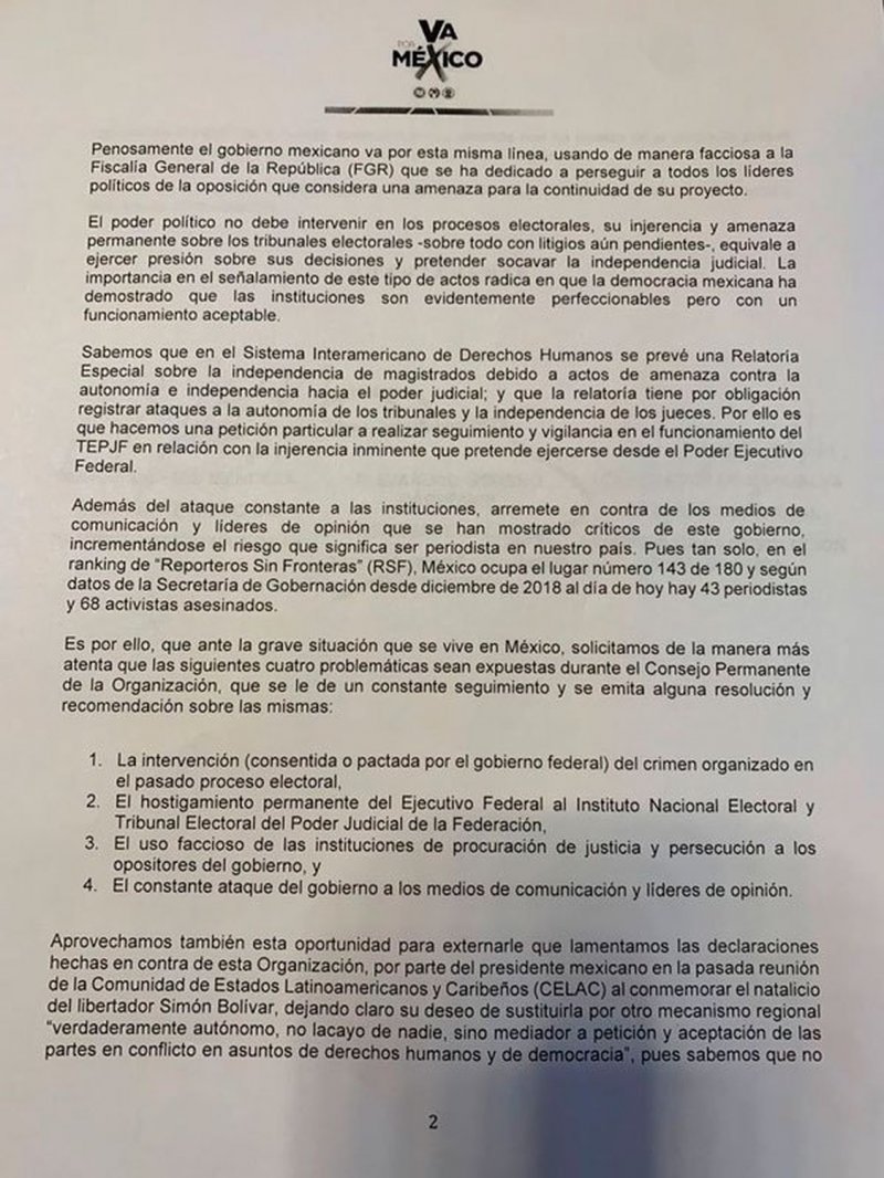 Por su parte, el dirigente del PRD, Jesús Zambrano, confió en que la OEA emita medidas de carácter precautorio para el gobierno de Andrés Manuel López Obrador sobre las supuestas agresiones en los comicios pasados.