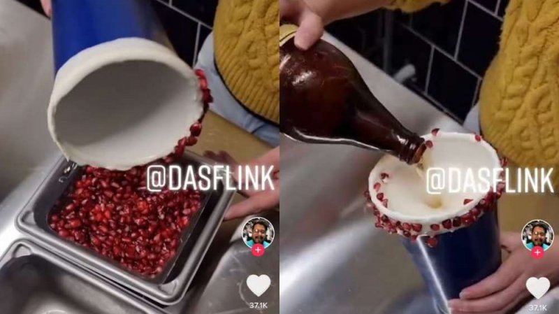 La cerveza se sirve con una escarcha de nogada y granada | TikTok @dasflink