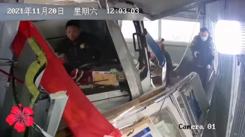 Las imágenes de lo ocurrido muestran a lo que sería un camión de carga fuera de control que termina estrellándose contra una caseta de cobro u oficina administrativa.