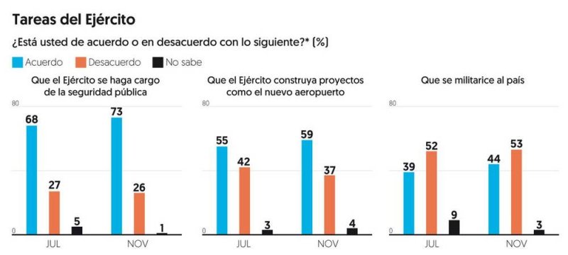 Además en la encuesta se interroga sobre las actividades del Ejército: Seguridad pública y la construcción del aeropuerto Felipe Ángeles.