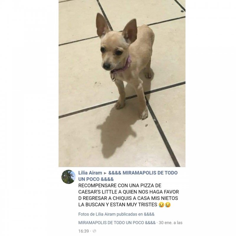 Otros usuarios de redes sociales han compartido la foto de perritos encontrados y que se parecen a Chiquis, pero hasta el momento no hay muchos avances en su localización.