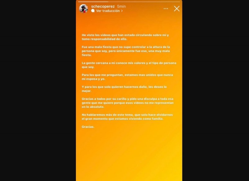 “Gracias a todos por su cariño y pido una disculpa a toda esa gente que me quiere porque esos videos no me representan en lo absoluto. No hablaremos más de este tema, que solo hace olvidarnos el gran momento que estamos viviendo como familia. Gracias”, escribió.