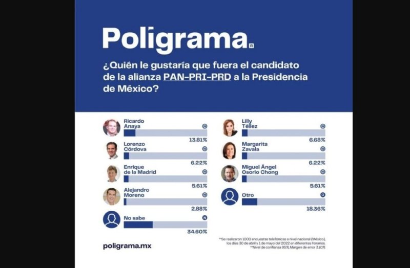 Miguel de la Madrid no sería el favorito para encabezar una posible alianza entre el PRI, PAN y PRD, contra Morena, de acuerdo a una encuesta que Poligrama presentó en mayo pasado.