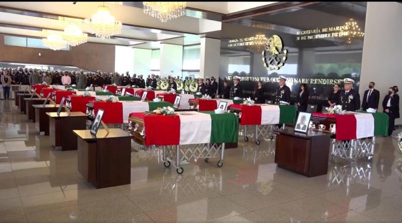 El domingo, la Semar rindió homenaje a los 14 elementos que fallecieron tras el desplome de la aeronave.