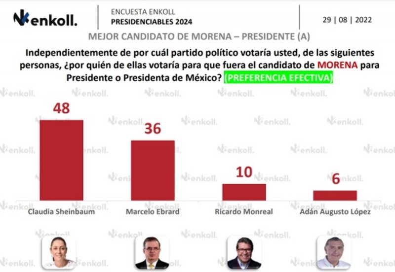 Por una parte, Sheinbaum encabeza las preferencias electorales para la candidatura a la presidencia de México, 12 puntos arriba de Ebrard.