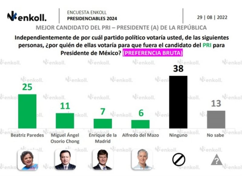 Sin embargo es Beatriz Paredes quien aparece con 25% de preferencia.