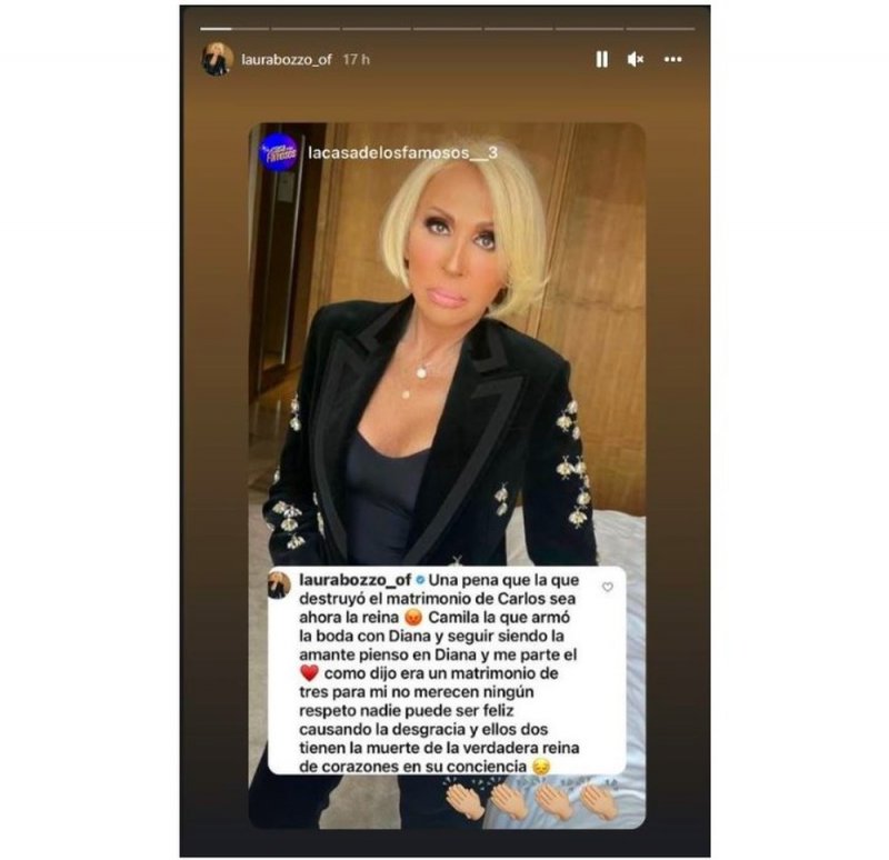 Muy a su estilo sin filtros, "la Señorita Laura" lamentó que Carlos y Camilla hereden el trono luego de la infidelidad en el matrimonio con Lady Diana, de quien se cumplieron 25 años de su muerte hace unos días.