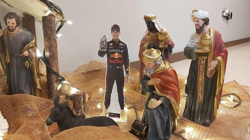 La exitosa temporada en la Fórmula 1 del piloto mexicano Sergio “Checo” Pérez logró tal trascendencia que una familia decidió colocar su fotografía en el nacimiento junto a los Reyes Magos.
