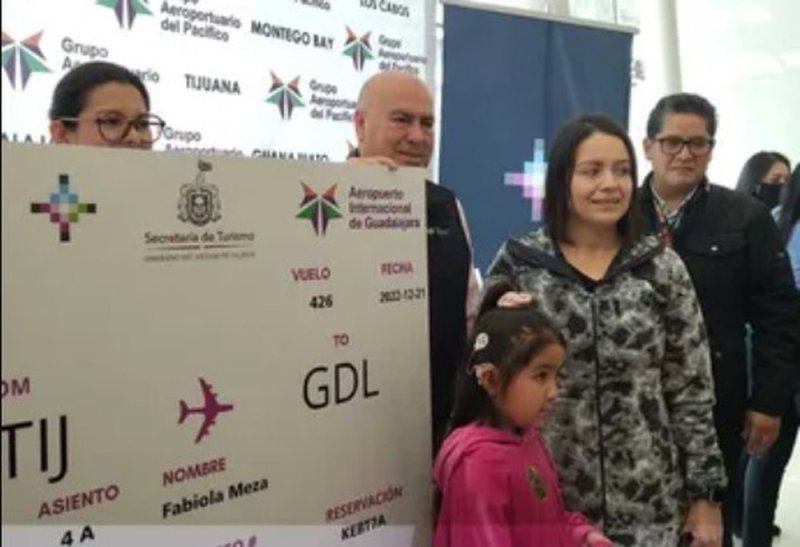 Todo comenzó la noche de ayer, cuando por carretera, como lo hacen muchos pasajeros que cruzan la frontera entre México y Estados Unidos, la familia de Fabiola Meza se trasladó a Tijuana para volar a Guadalajara y por el retraso en la salida, llegó “cansada” a la capital jalisciense, donde la recibieron con una sorpresa, pues fue la pasajera 15 millones y rompió el récord que tenía la ciudad.