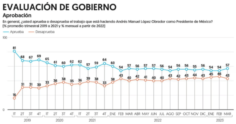 Sube la aprobación del presidente @lopezobrador_. La más reciente encuesta nacional de El Financiero revela que el nivel de aprobación del presidente subió en marzo al 57%. Respecto a la tragedia de Ciudad Juárez, 56 por ciento aprueba la manera en que el Presidente ha actuado. pic.twitter.com/4p7BadQdAp