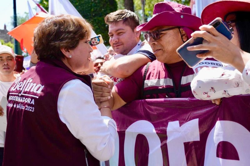 Tlalnepantla, Estado de México; 16 abril de 2023. La maestra Delfina Gómez, candidata a gobernadora del Estado de México por MORENA, PT y PVEM, visitó este domingo una zona del estado afectada por los altos índices delincuenciales, en donde se comprometió a erradicar la problemática que hoy convierte a los Centros de Readaptación Social, en escuelas del crimen y en centros de operación delictiva, desde donde se llevan a cabo muchas de las extorsiones.