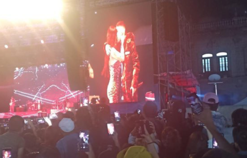De acuerdo con las personas que se dieron una vuelta por el evento para ver a su artista favorito, invitó a Karely Ruiz al escenario y le cantó la canción "Mar y Tierra", y al finalizar se dieron un gran beso; ello animó al público, quienes continuaron gritando y los convencieron de darse un segundo beso, esta vez mucho más apasionados.