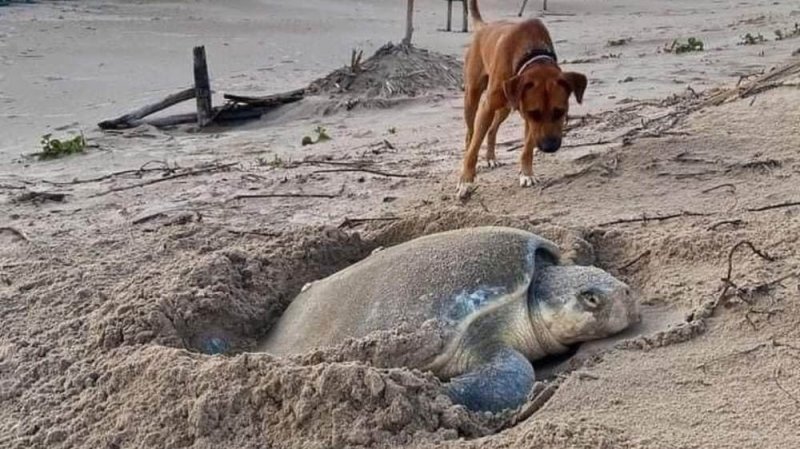 En las imágenes se puede observar al perrito en la playa cuidando a las tortugas recién nacidas, así como a aquellas que llegan a desovar en la arena. De igual manera, compartieron imágenes del peludito muy cerca de las pequeñas aventureras que caminan hacia el mar para emprender su viaje acuático.