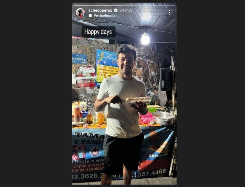 El piloto mexicano de Red Bull compartió en sus historias de Instagram una imagen en la que se le ve comiendo un elote en un puesto en las calles de la Perla Tapatía.