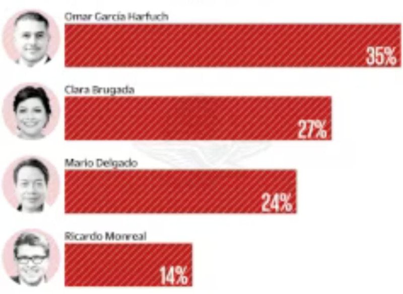 Sin embargo, en la preferencia afectiva la preferencia hacía el jefe del policía capitalino es del 35%; mientras que Clara Brugada llega a los 27 puntos y Mario Delgado 24 puntos.