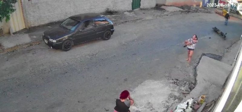 Los hechos ocurrieron en el barrio Indaiá de Teófilo Otoni, Minas Gerais, en Brasil. En las imágenes se aprecia que la moto debido al impacto, saca volando al menor y lo lanza varios metros adelante. La mujer impactada corre hacia su pequeño y lo toma entre sus brazos para verificar su estado de salud.