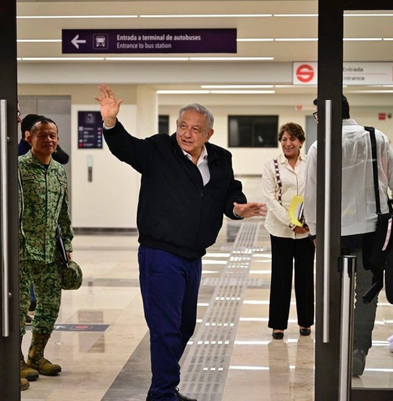 López Obrador y Delfina Gómez supervisan obra de tren suburbano al AIFA