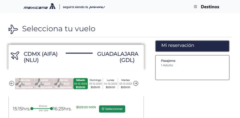 La nueva aerolínea estatal, Mexicana de Aviación, lanzó su sitio web con promociones y ofertas para 20 destinos del país, saliendo todos desde el Aeropuerto Internacional “Felipe Ángeles” (AIFA) y con precios que tienen descuento para adultos mayores.