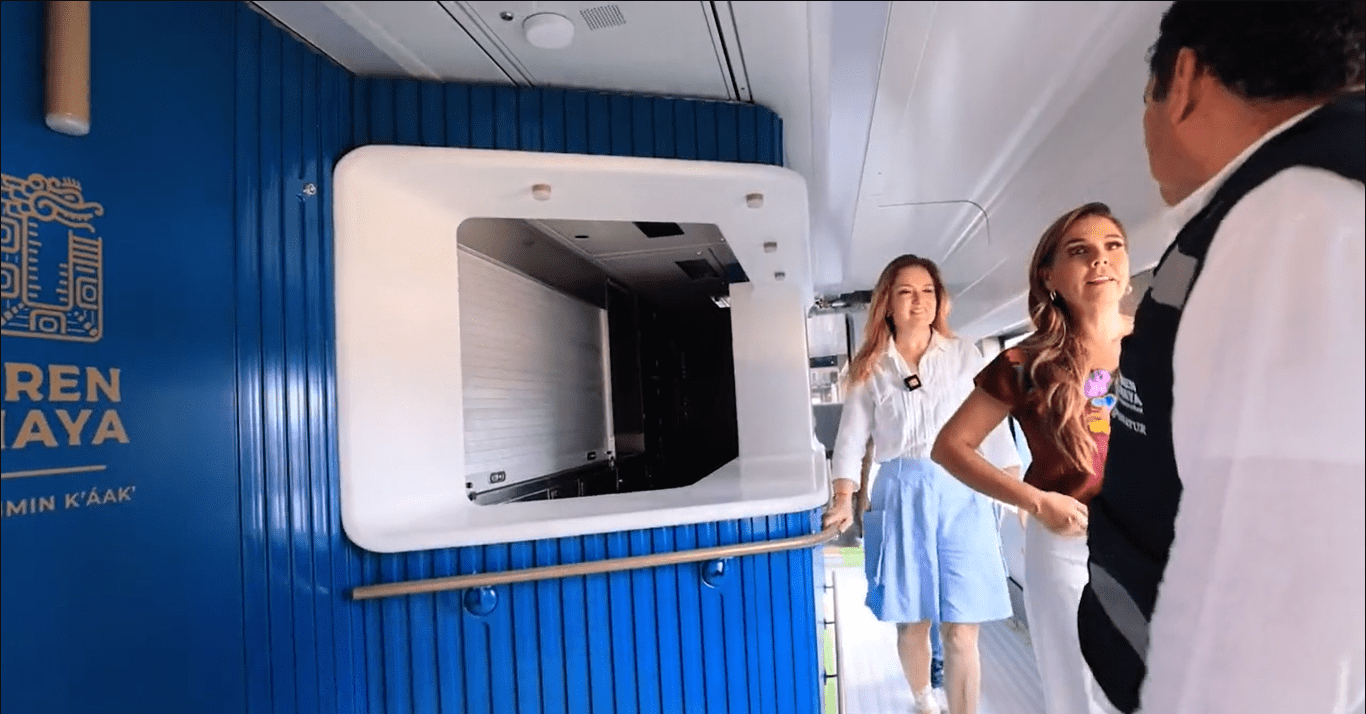 Mediante un recorrido en video realizado por uno de los convoyes del Tren Maya, el Director del Fondo Nacional de Fomento al Turismo (Fonatur), Javier May, la Gobernadora de Quintana Roo, Mara Lezama y la Directora de Alstom México, Maite Ramos, mostraron cómo lucirán los espacios interiores.