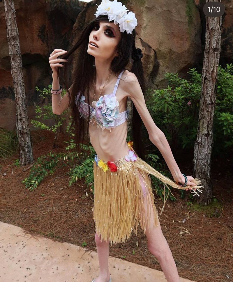 Y es que esta influencer es conocida por su frágil aspecto y su delgadez extrema que desde hace unos años ha llamado la atención de miles de personas, la mayoría de ellas se inquieta ante la extrema falta de masa muscular de la joven que hace pensar que sufre algún transtorno alimenticio, como bulimia o anorexia, sin embargo, ella lo ha desmentido en varias ocasiones.