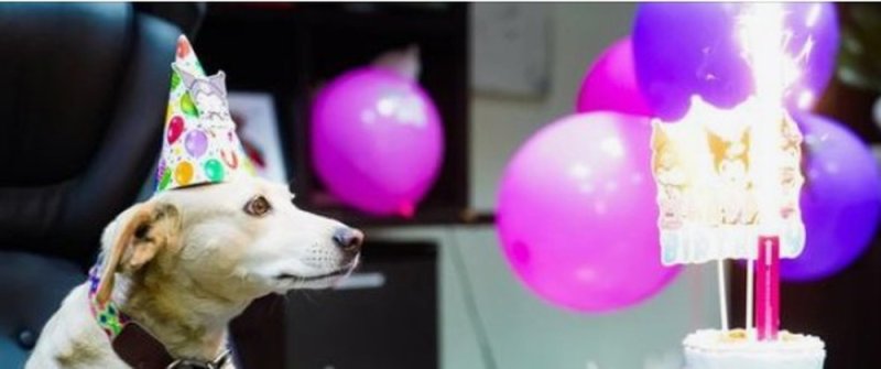 El lugar fue tapizado con globos y carteles de celebración, mientras que la perrita se situó en la silla principal y lució un gorrito festivo.