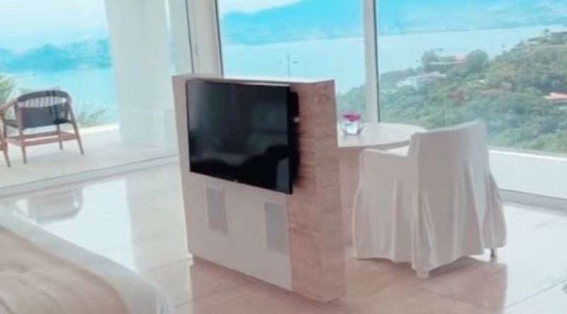En las imágenes vemos que la propiedad cuenta con una envidiable decoración en tonos blancos que le dan un toque de elegancia. En la habitación se alcanza a apreciar que tiene todas las comodidades como una gigante cama, televisión, desayunador y un balcón con vista al mar.