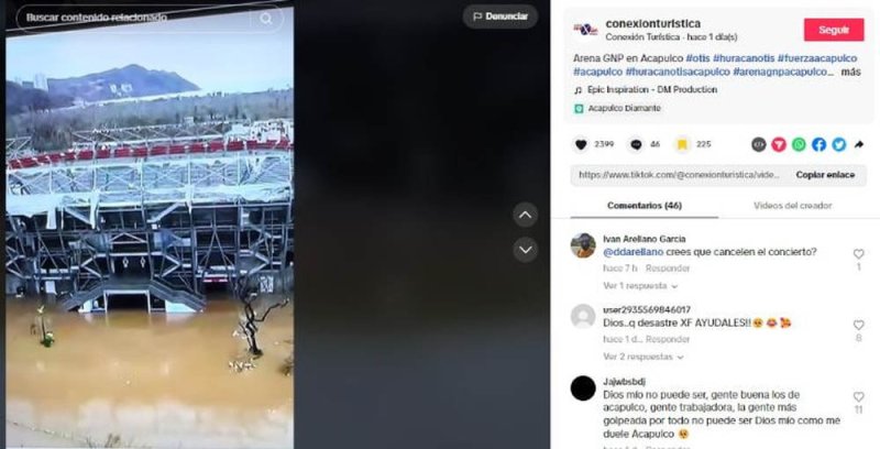 “Dios mío no puede ser, gente buena los de acapulco, gente trabajadora, la gente más golpeada por todo no puede ser Dios mío como me duele Acapulco”, “crees que cancelen el concierto” y “tiene que estar listo para el concierto de luismi”, son algunos de los comentarios que se leen.