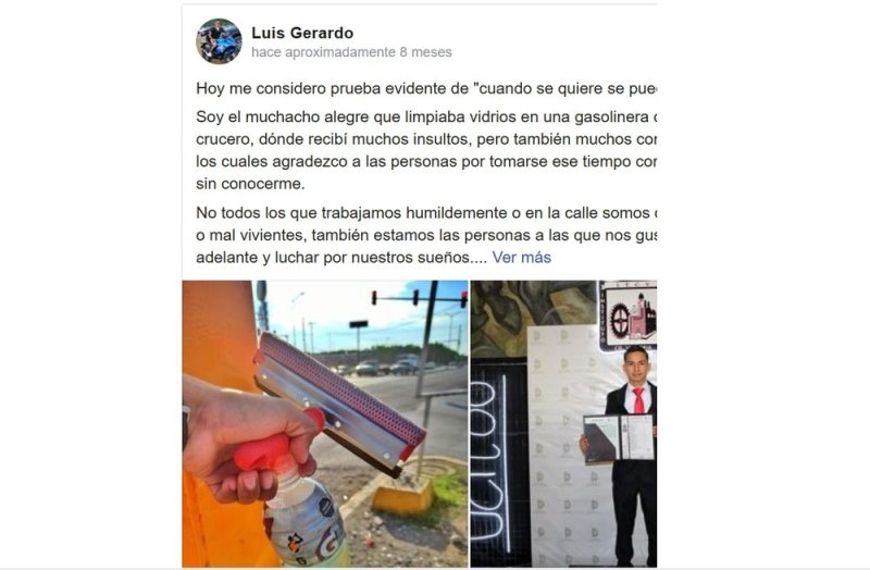 Como bien se describió anteriormente, en redes sociales fue que se compartió este caso de éxito el cual generó mucha motivación para muchas personas y polémica para otras. El protagonista de esta historia compartió dos fotografías en su cuenta oficial de Facebook, en una se puede ver su mano sosteniendo algunas de las herramientas de su trabajo, y en la otra foto, se puede ver al joven vestido de gala, mostrando su título profesional.