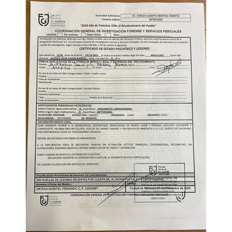 El columnista y conductor de "Tiempo de Negocios" del Heraldo Media Group, Darío Celis, difundió documentos que acreditan la aprehensión del también académico el día de ayer martes, además de que el implicado habría comentado con las autoridades que padece de enfermedades, por lo que requiere medicamentos.