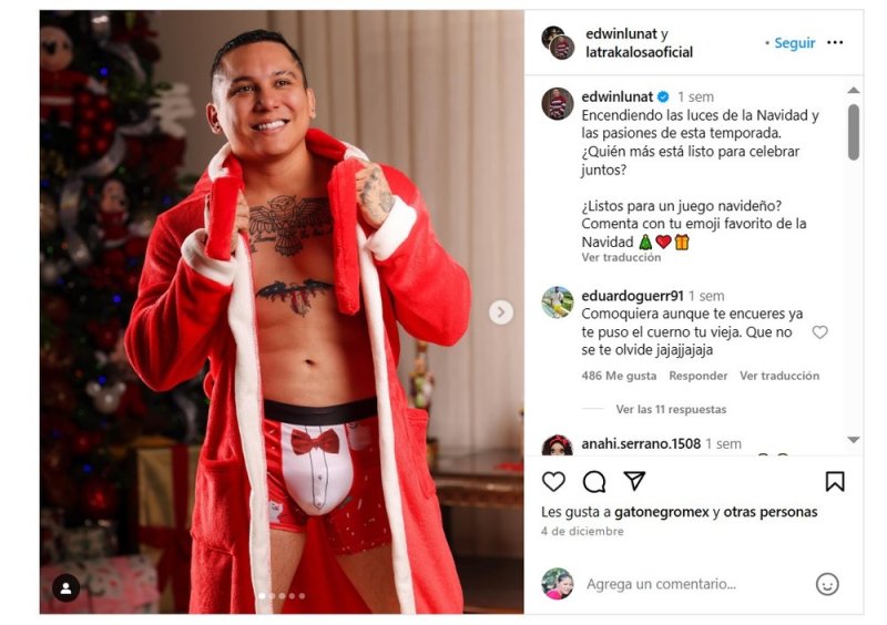 La publicación, en la que Luna posa ataviado con una bata roja y un ajustado bóxer con motivos navideños, generó más burlas que halagos, convirtiéndolo en tendencia, pero no por las razones que esperaba.