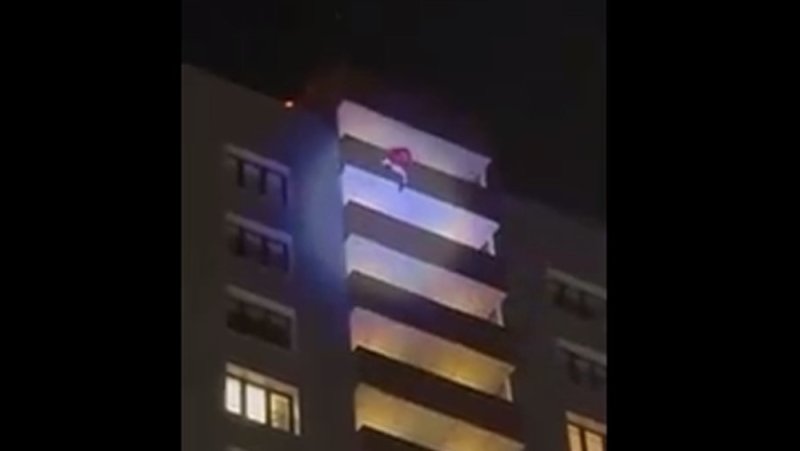 El clip se hizo viral de inmediato ya que se puede observar el instante en el que el hombre trata de bajar por la cuerda colocada en uno de los balcones de las viviendas, pero la capa del traje le impide ver con claridad donde estaba el cable y cae directo al vacío entre gritos de los presentes.