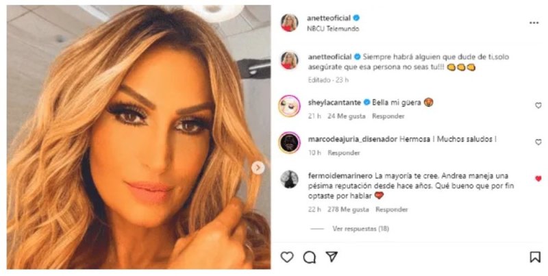 "La mayoría te cree, Andrea maneja una pésima reputación desde hace años. Qué bueno que por fin optaste por hablar", "Con el simple hecho de que tú si tienes habilitados los comentarios, ya dice todo! Eres admirable", "Dale con todo y si tienes pruebas demanda ya como dijiste ese dinero para donarlo haces obra, las mujeres frontales como tú me representan a la cara con carácter y sin miedo", escriben las redes sociales.
