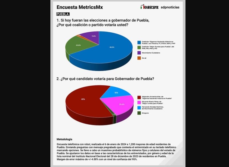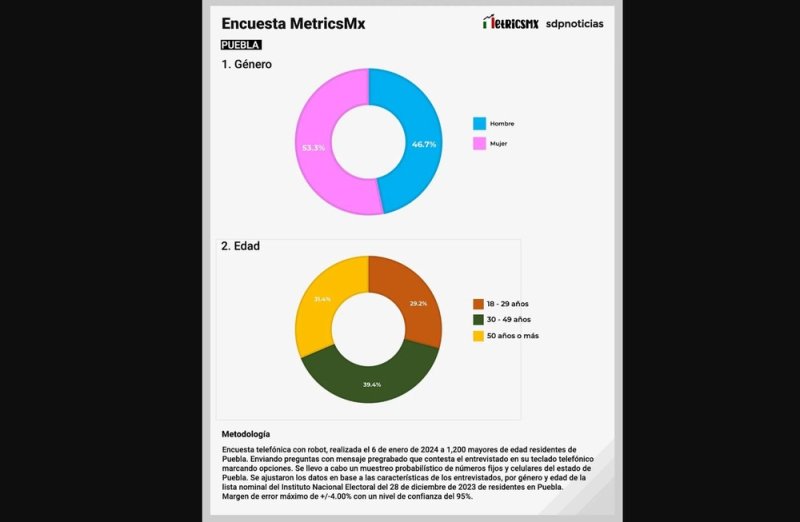 La metodología fue realizada por encuesta telefónica con robot, el 6 de enero de 2024 a 600 mayores de edad residentes de Puebla.