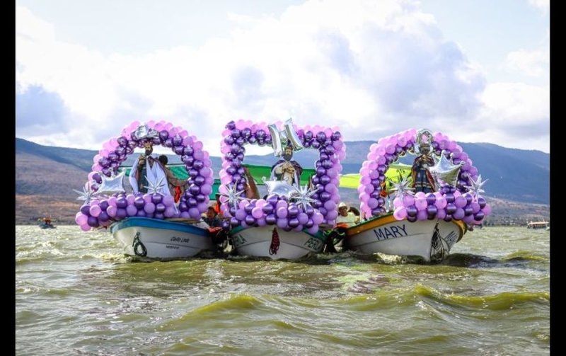 Después de unos 40 minutos de recorrer la Laguna de Cajititlán, las figuras arribaron al Malecón, donde fueron recibidas con confeti, pirotecnia y música, así como miles de peregrinos.