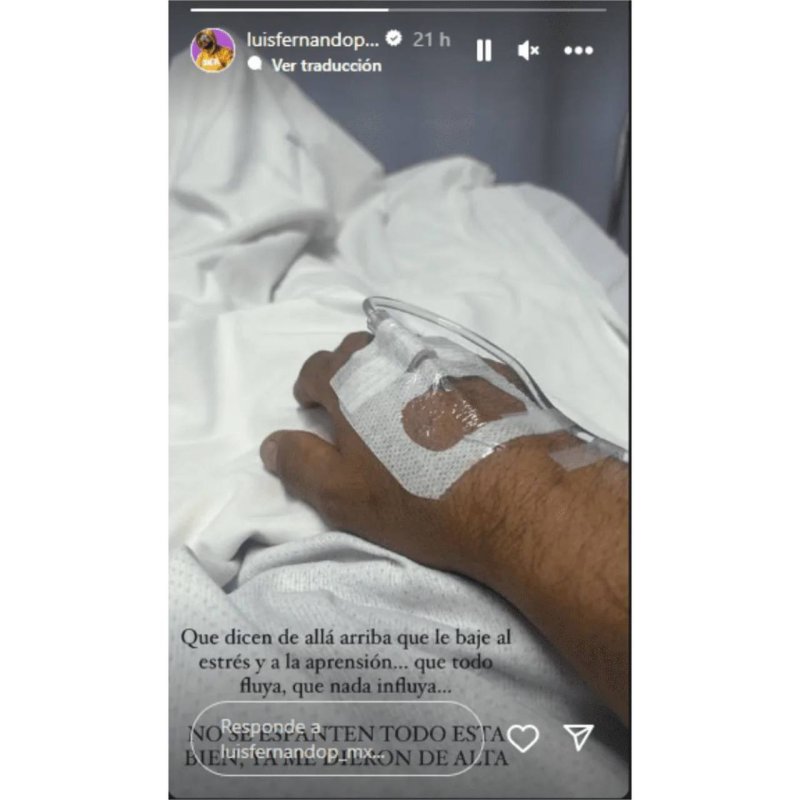 Fue el mismo Luis Fernando quien a través de su cuenta en Instagram dio a conocer que enfrentó problemas de salud y tuvo que ser hospitalizado el fin de semana, sin embargo, no dio más detalles al respecto, afortunadamente, ya ha sido dado de alta.